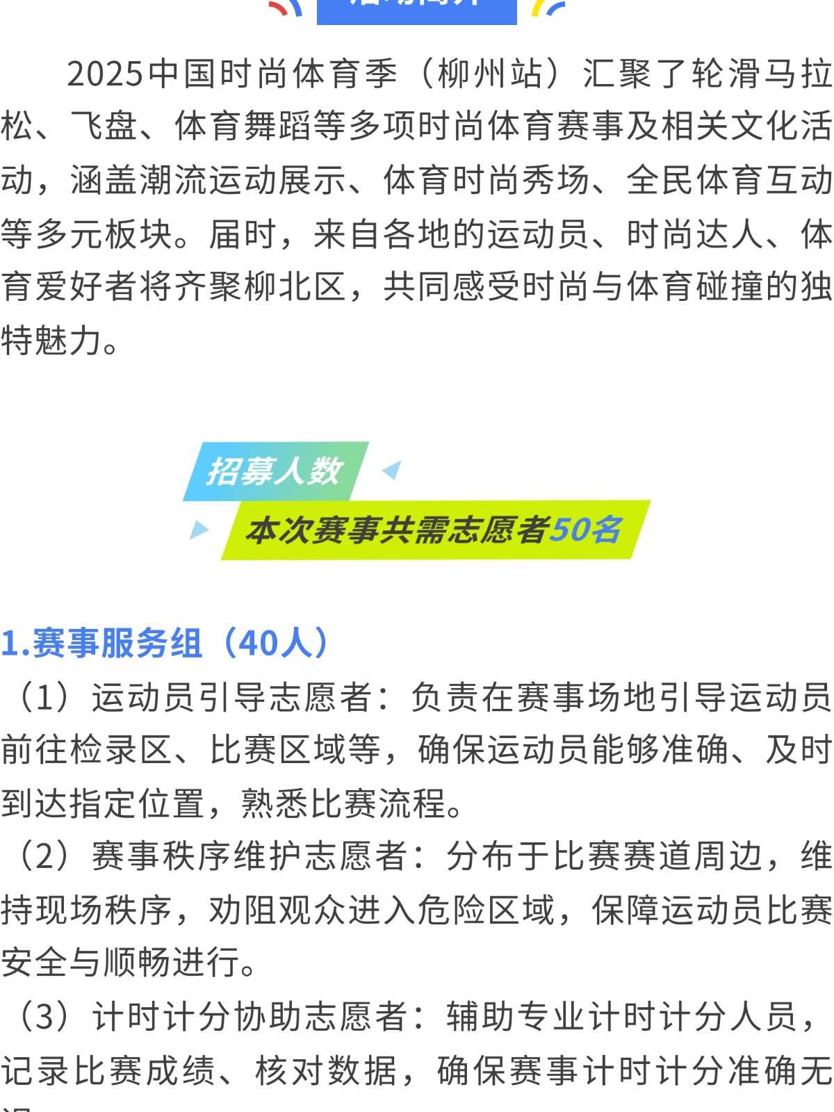 加入我們!2025 中國時尚體育季(柳州站) 志愿者招募中! 發(fā)布時間:2025年08月15日 10時來源:本站原創(chuàng)瀏覽:76 人次