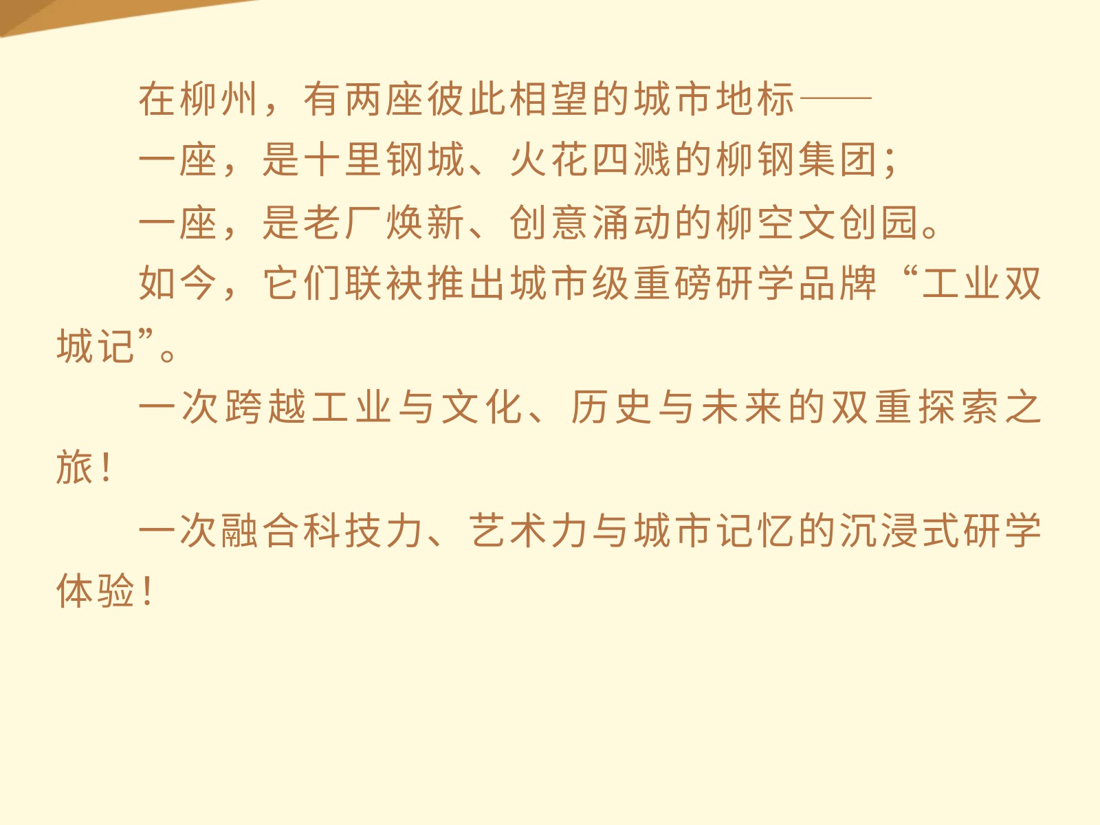 柳鋼+柳空|“工業(yè)雙城記”聯(lián)合研學(xué)品牌震撼上線! 發(fā)布時間:2025年04月25日 16時來源:本站原創(chuàng)瀏覽:85 人次
