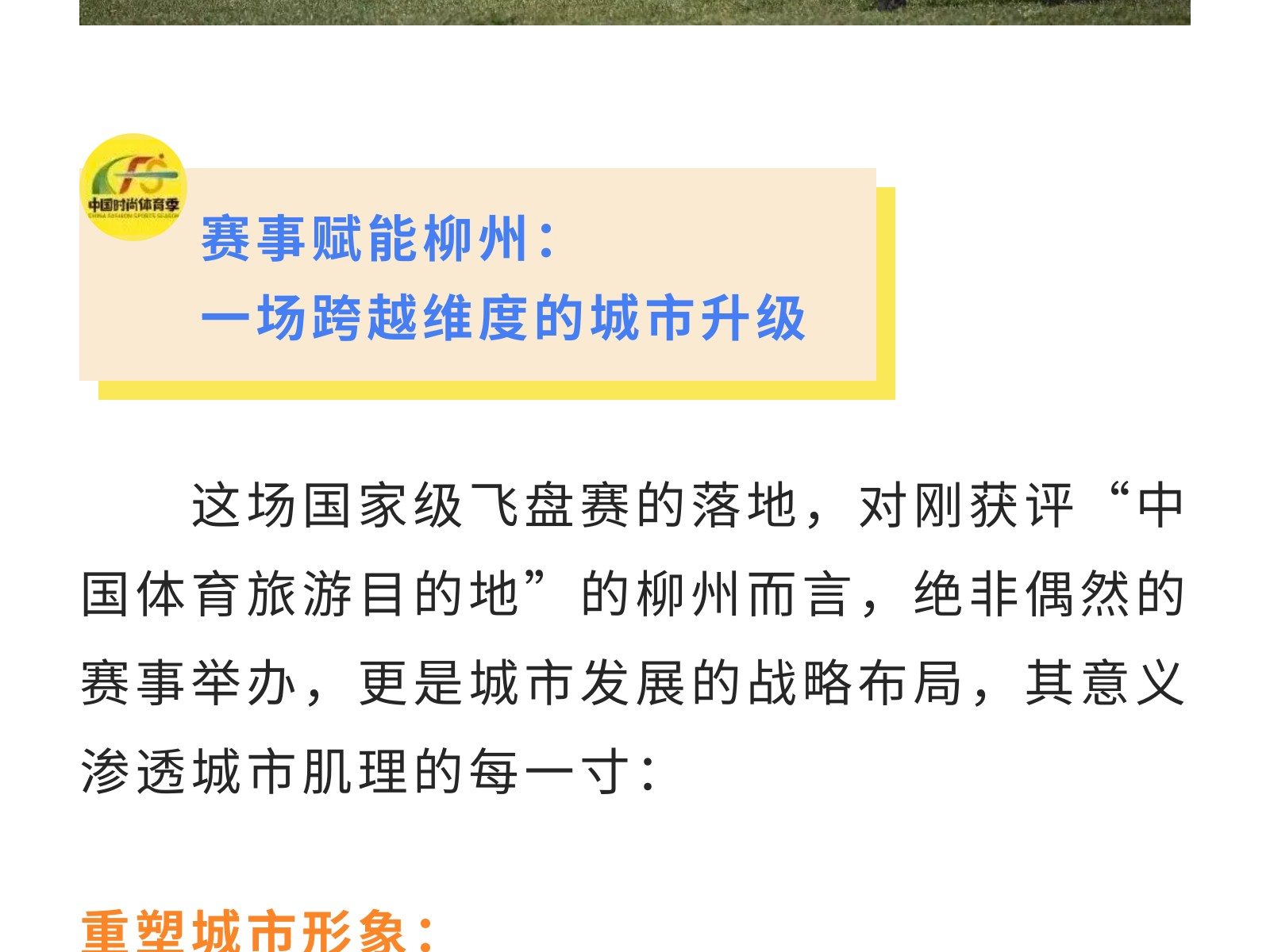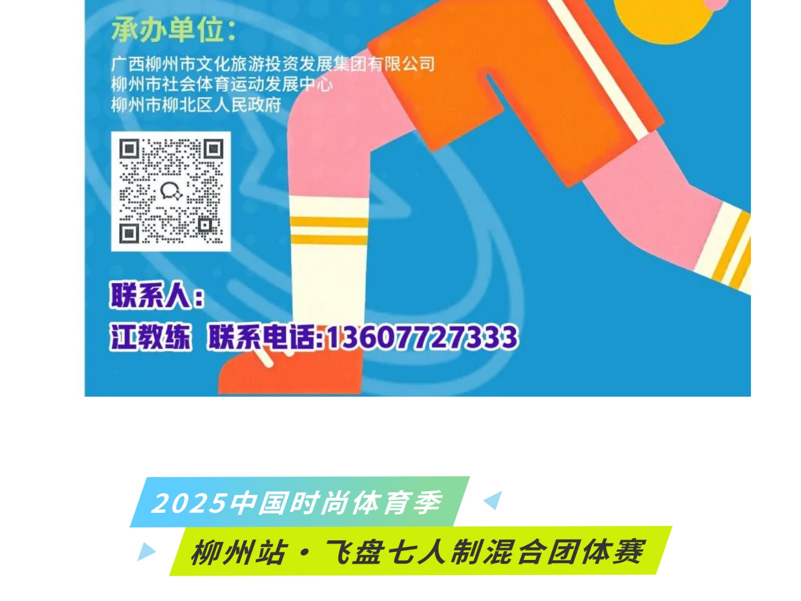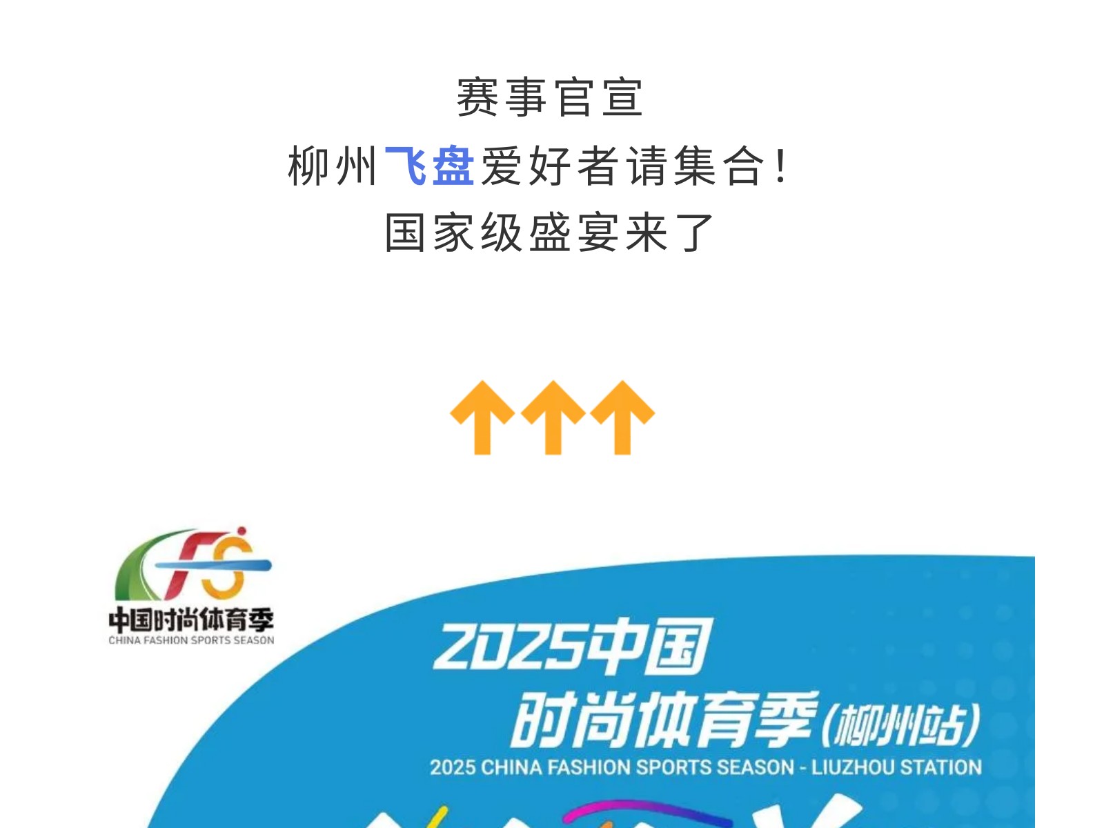 官宣!2025中國(guó)時(shí)尚體育季(柳州站)飛盤(pán)邀請(qǐng)賽來(lái)襲!10月3-4日燃情開(kāi)幕! 發(fā)布時(shí)間:2025年09月27日 10時(shí)來(lái)源:本站原創(chuàng)瀏覽:33 人次