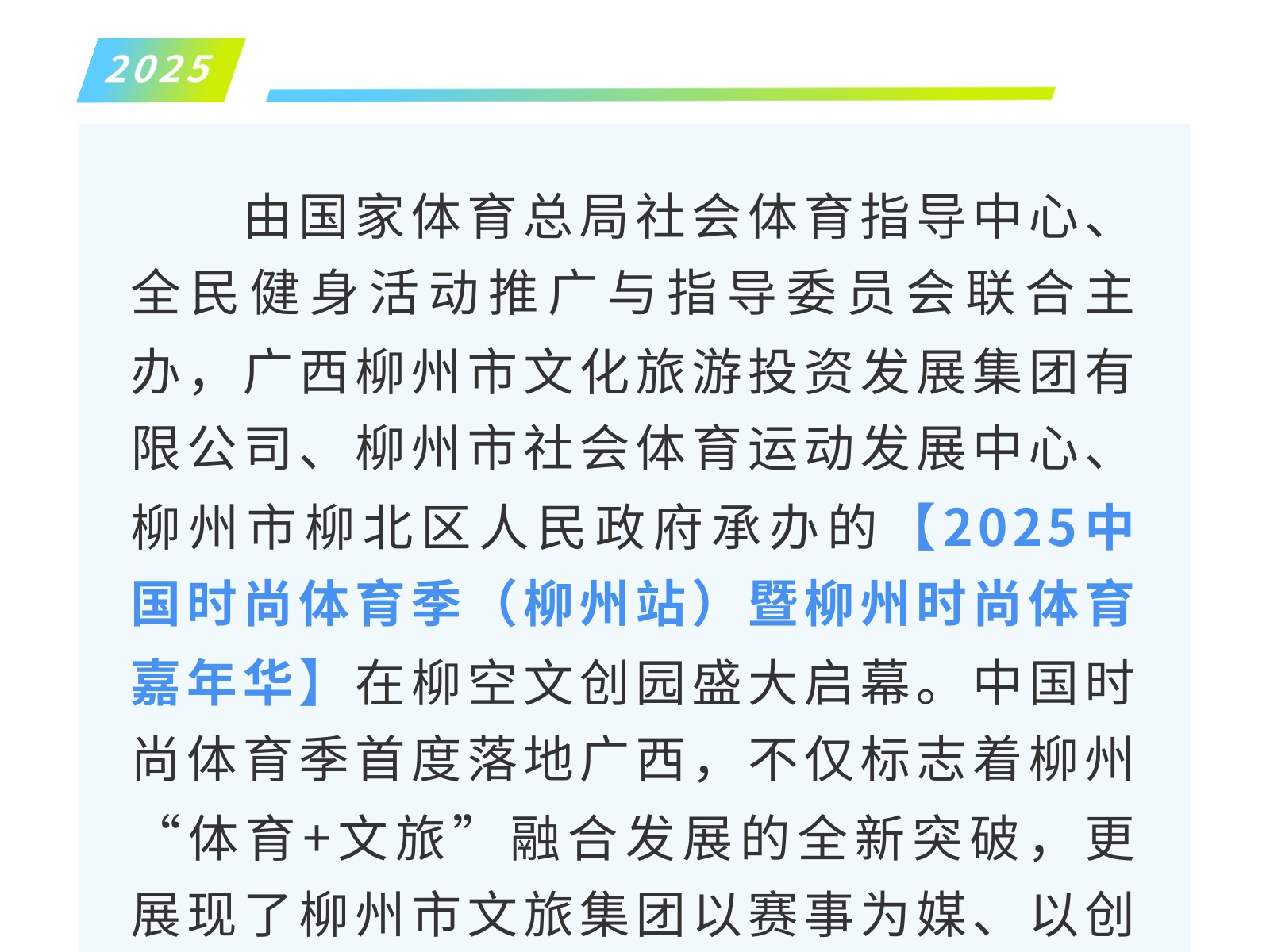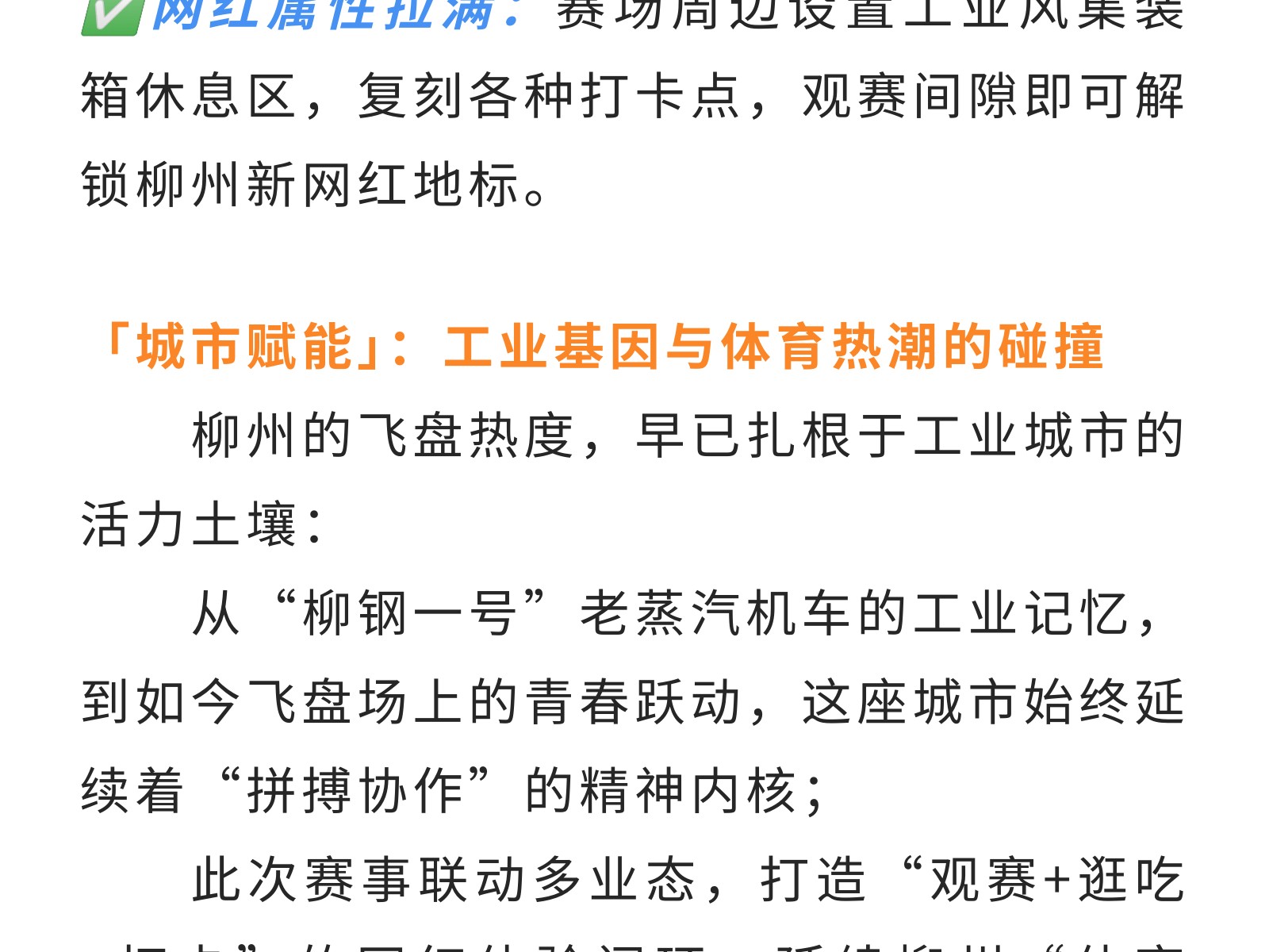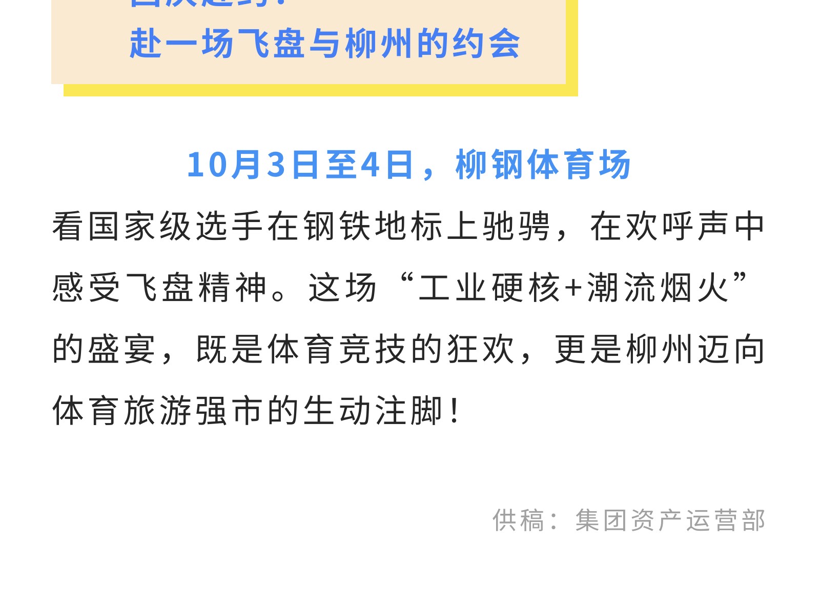 官宣!2025中國(guó)時(shí)尚體育季(柳州站)飛盤(pán)邀請(qǐng)賽來(lái)襲!10月3-4日燃情開(kāi)幕! 發(fā)布時(shí)間:2025年09月27日 10時(shí)來(lái)源:本站原創(chuàng)瀏覽:33 人次
